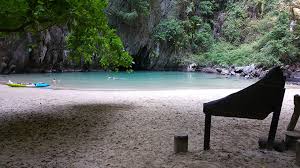 The lagoon can only be reached if you kayak, or swim through a pitch black, 80 meter long cave.